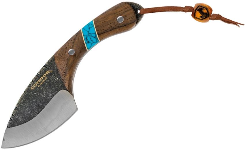 The Blue River Skinner is a beautifully crafted yet full functional work of art. The very wide, full-tang blade is made from 440 stainless steel, and has a nice belly for skinning. The blade also isn't too long, which allows for more wrist flexibility and precision while skinning. The handle is made from walnut with a turquoise inset, and is held onto the thick tang with brass rivets.