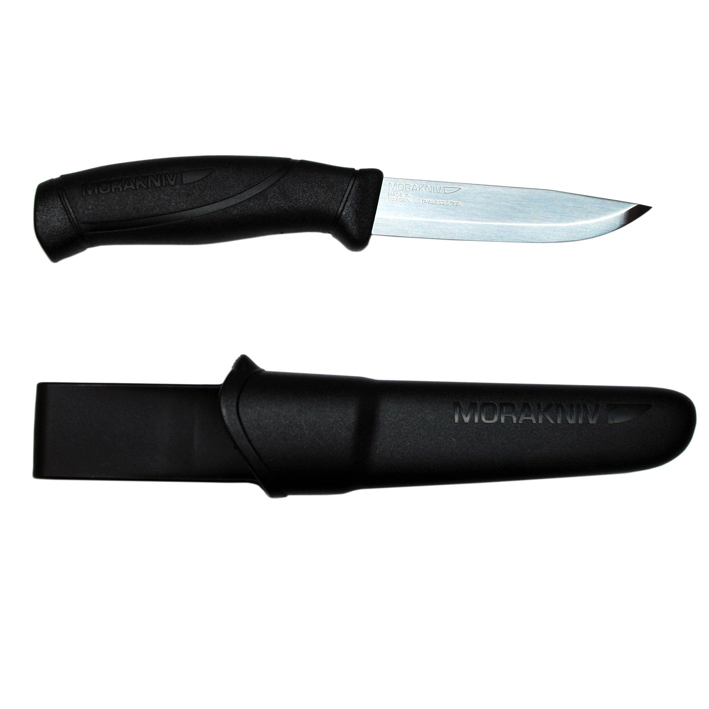 The Companion is Mora's mainstay utility knife, popular around the world and the perfect choice for hundreds of different uses.  The Companion line is priced inexpensively but still has very high quality production values and could last you a lifetime if not abused (and even if they are abused, they still hold up surprisingly well).  The Companions are an all-around outstanding value.  The rubberized plastic handle features a guard in front and a hooked pommel in the back, for a more improved grip.  The handle click-locks securely into the plastic sheath, and the sheath clips onto your belt.