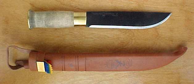 The 7" Old Fashioned Strömeng leuku is designed in a more traditional Scandinavian fashion, and has a blackened carbon steel blade and tar stained handle. The handle is a bit smaller than the others from this line, but still quite generous and large enough to provide a firm grip to average-sized hands.